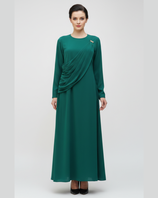 Featuring a classic round neckline and full-length sleeves, this abaya ensures comfort and coverage for everyday wear, work, travel, or special occasions. The A-line cut flatters all body types while maintaining a clean, contemporary look suitable for European modest fashion trends.