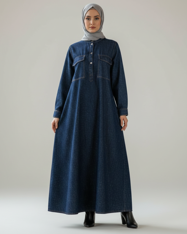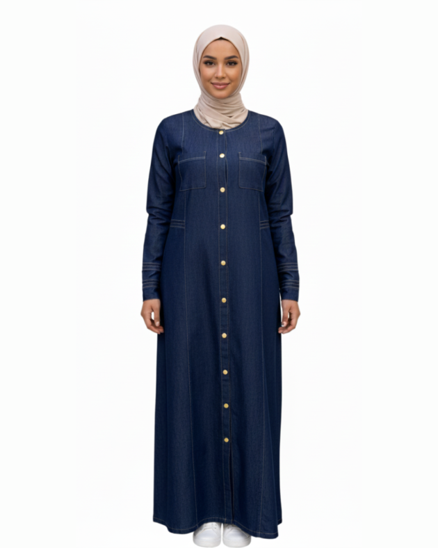 Unwashed Denim Abaya – Long Modest Dress for Modern Elegance