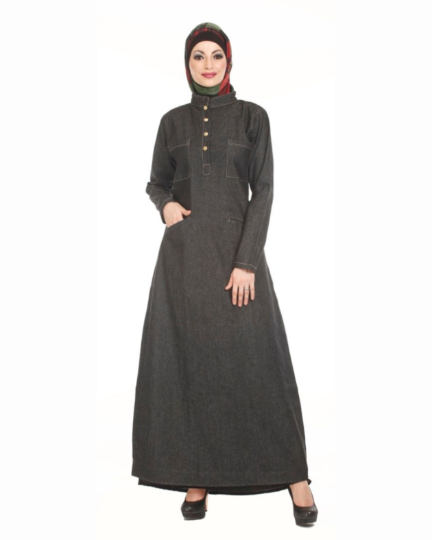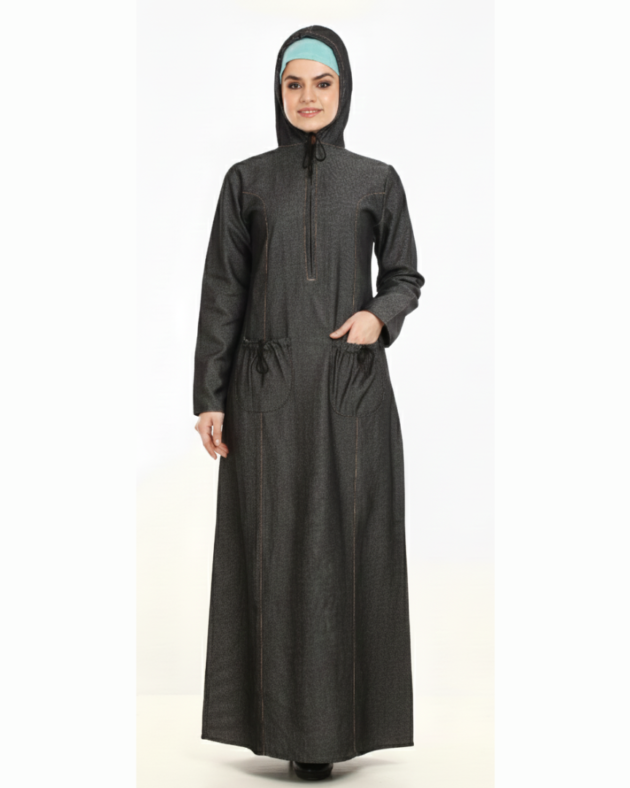 Sustainable Modesty: Unwashed Denim Long Abaya with pocket.