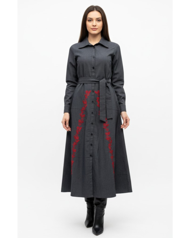 Unwashed Denim Abaya Jacket- with Red Silk Embroidery