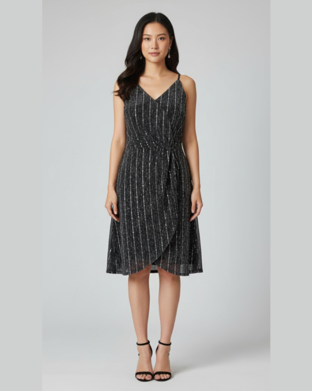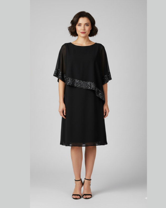 Midnight Sequin Georgette Party Dress – Cocktail Midi
