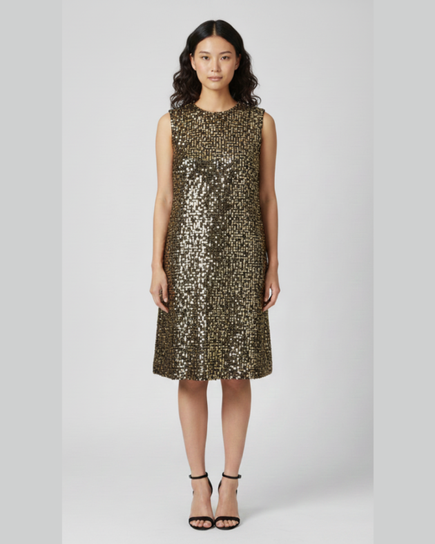 Celestial Glitter Shift Dress – Sleeveless U-Neck Evening Mini