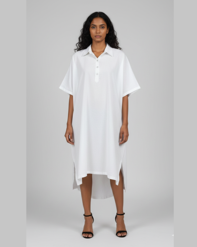 Women’s White Relaxed Fit Shirt Dress – Minimalist Midi Tunic