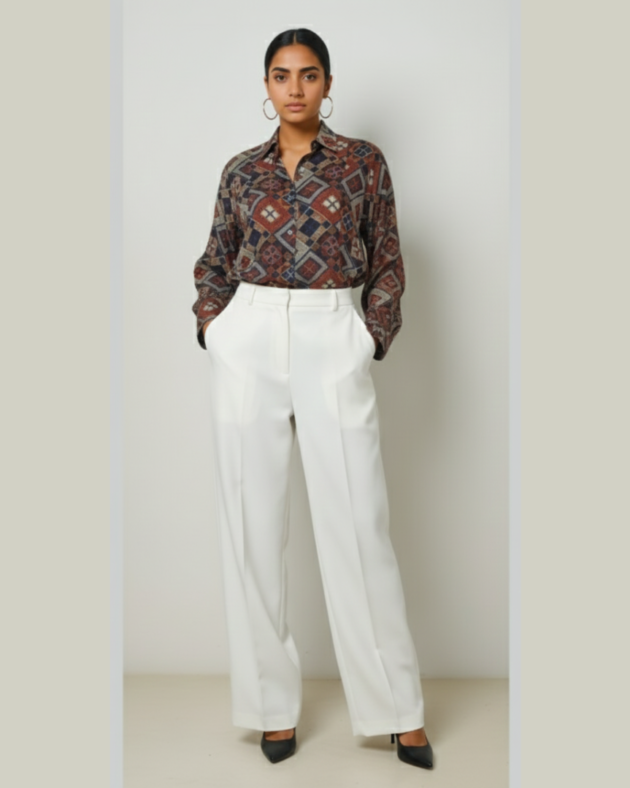 Women’s Matte Satin Printed Shirt – Elegant Workwear