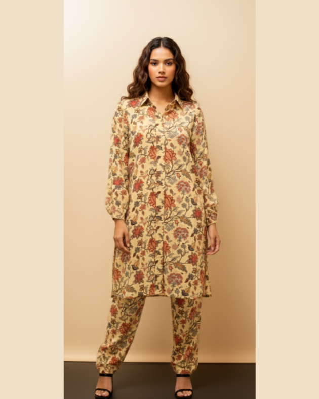 Luxe Poly-Crepe Modal Kaftan Co-ord Set – Effortless Relaxed Fit