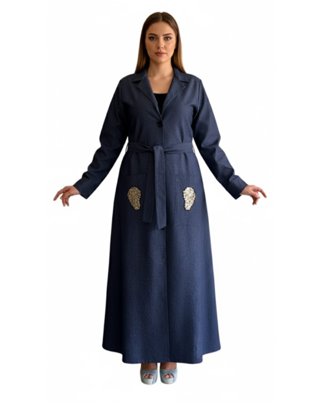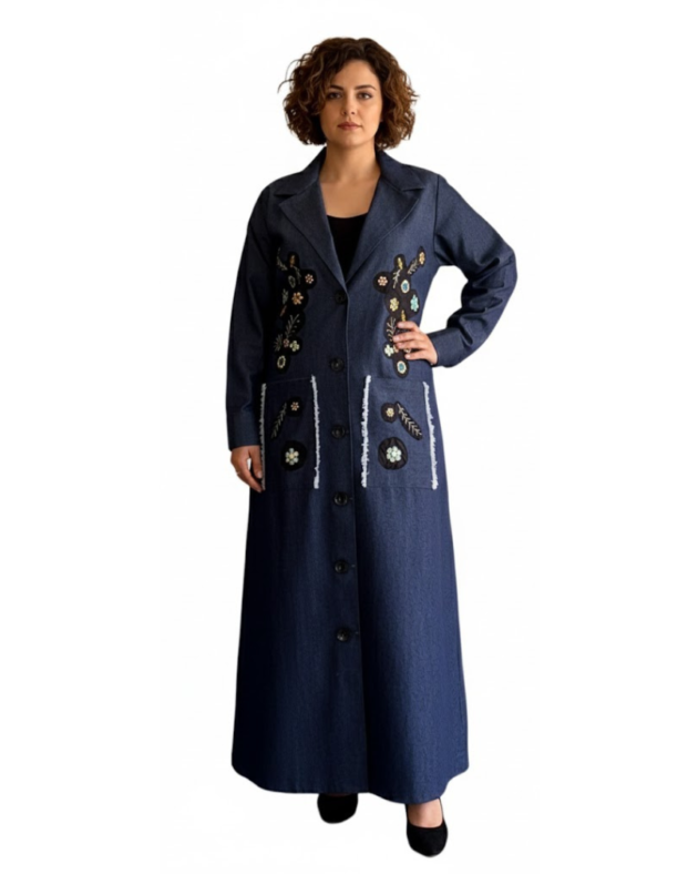Artisan Handworked Denim Abaya Jacket – Eco-Chic Modesty