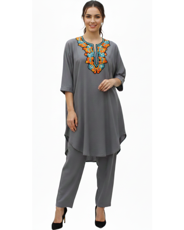 Women’s Sustainable Cotton Tunic & Pant Set with Embroidery