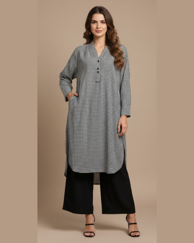 Women’s Checkered Crepe Longline Tunic – Everyday Wear