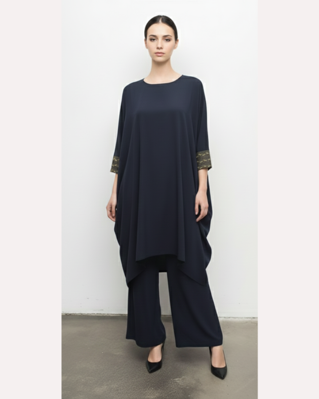 Women’s Loose Asymmetrical Tunic & Pant Set in Poly Crepe