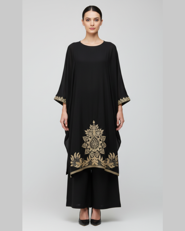Women’s Embroidered Tunic & Pant Set in Poly Crepe