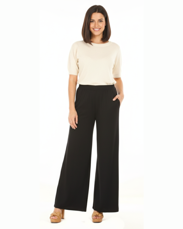 Black Poly Knit Comfort Trousers – Effortless Loose Fit