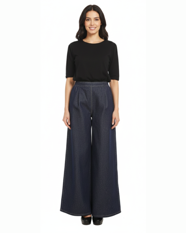 Raw Indigo Loose-Fit Denim Trousers – High-Waist Comfort