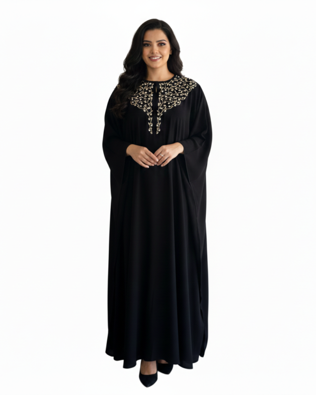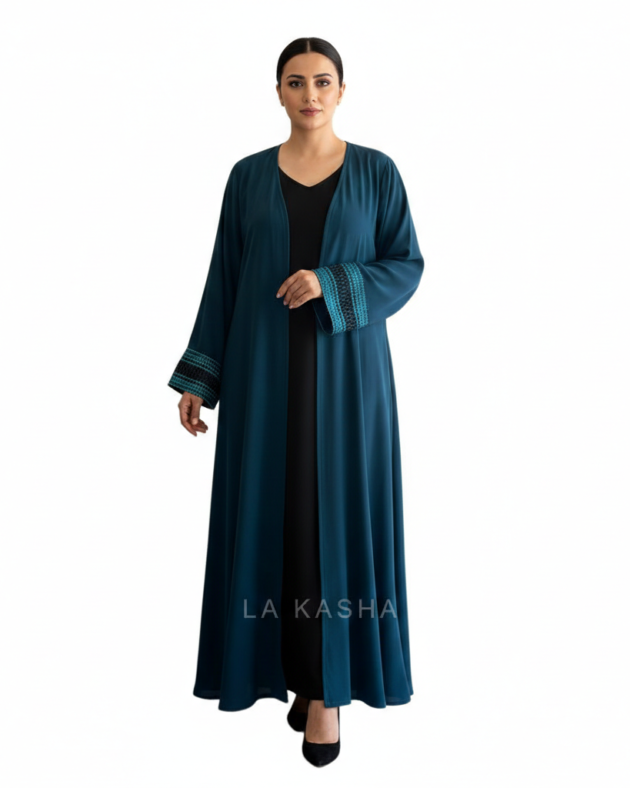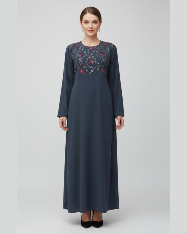 Featuring a classic round neckline and full-length sleeves, this abaya ensures comfort and coverage for everyday wear, work, travel, or special occasions. The A-line cut flatters all body types while maintaining a clean, contemporary look suitable for European modest fashion trends.