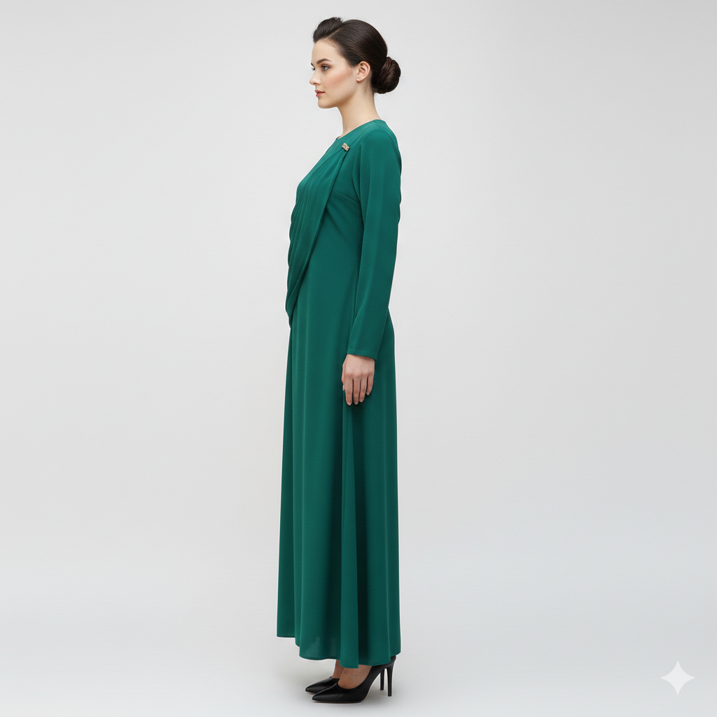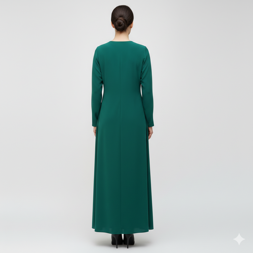 Featuring a soft drape and smooth finish, the abaya provides ease of movement while maintaining a polished appearance. Subtle detailing and a clean, minimal design ensure versatility, allowing this modest dress to transition effortlessly from day to evening. A reliable wardrobe essential for women who value comfort, simplicity, and timeless style.
