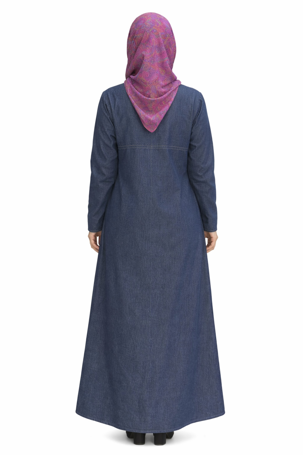 Full-length modest silhouette with a relaxed fit