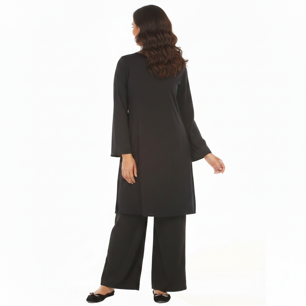 Paired with coordinated pants, this versatile ensemble is ideal for workdays, casual outings, travel, or relaxed evening wear. Inspired by European minimalism, it blends comfort, craftsmanship, and timeless style in one refined look.