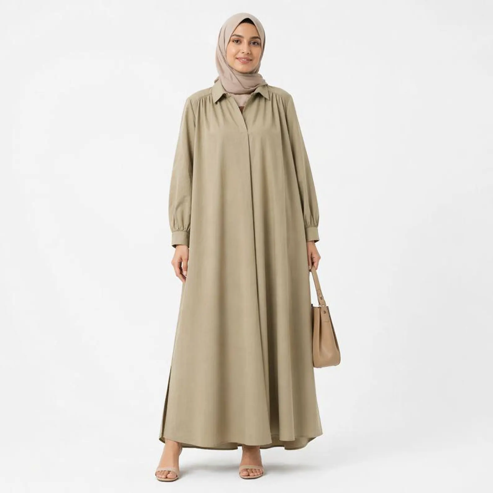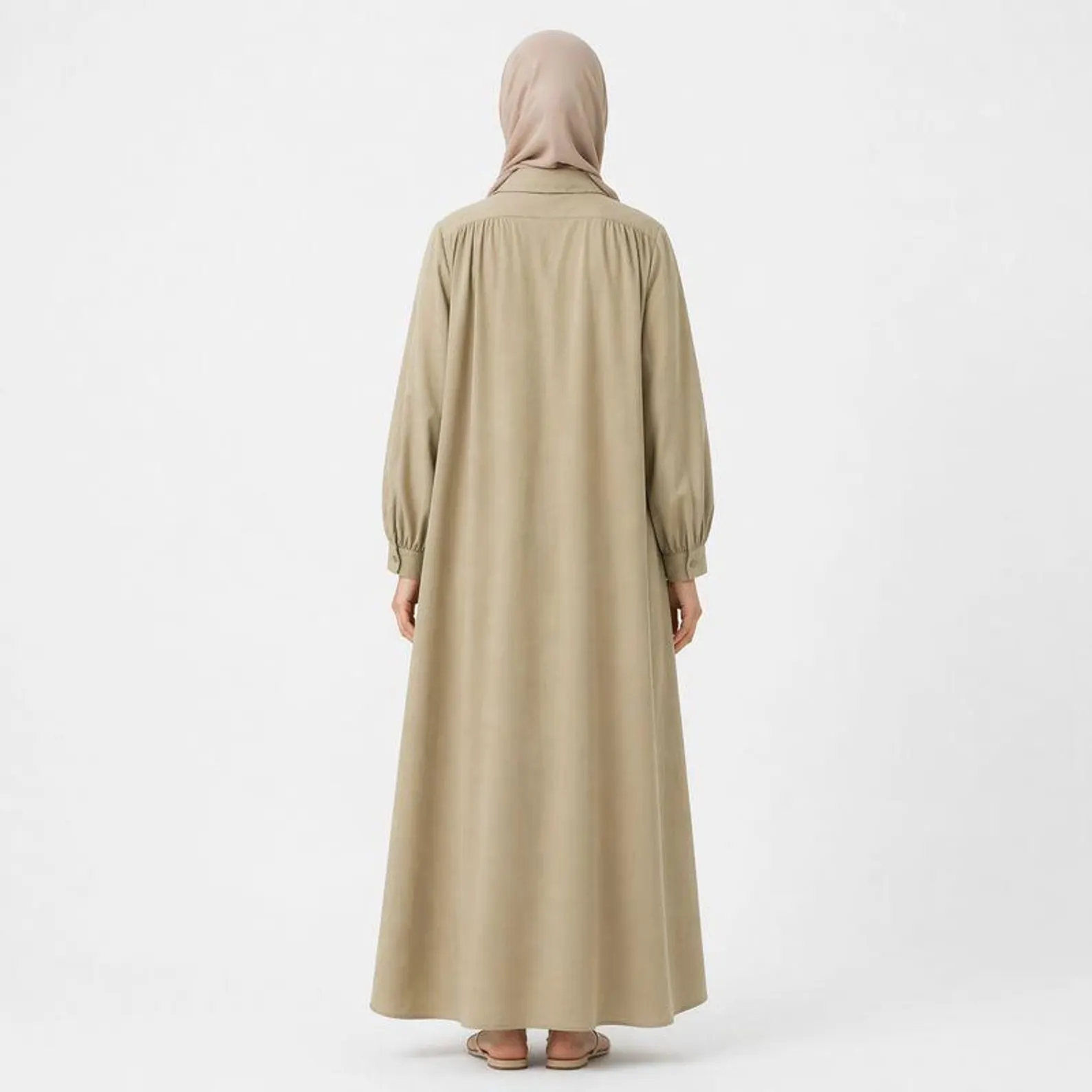 The loose, flowy silhouette offers full coverage and ease of movement, making it perfect for daily wear, travel, or relaxed occasions. A versatile staple rooted in sustainable fashion, this abaya blends simplicity with refined minimalism.