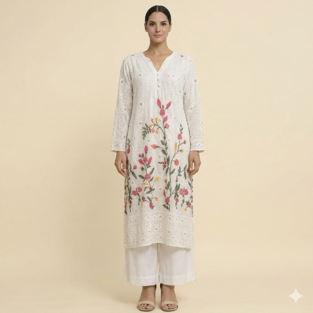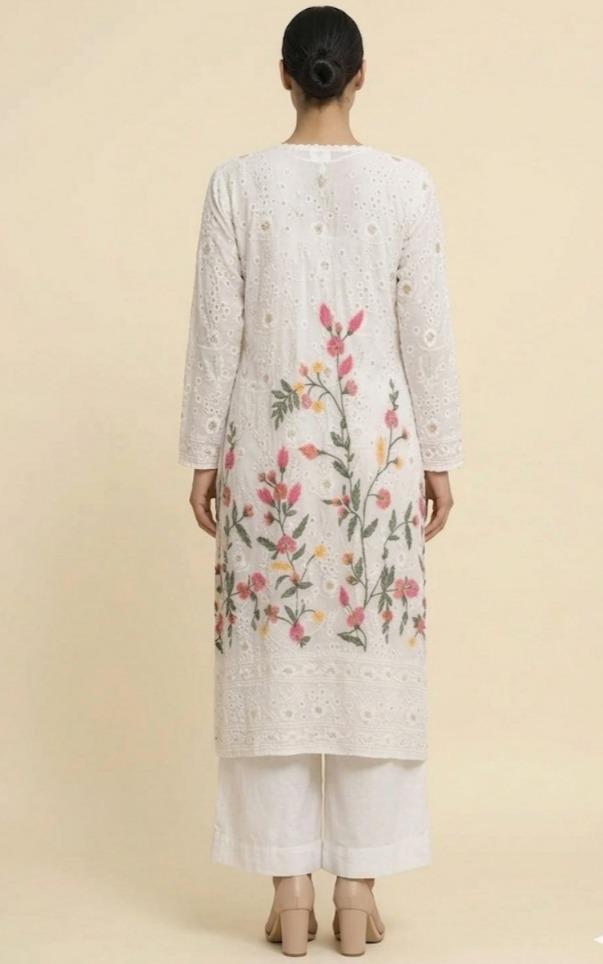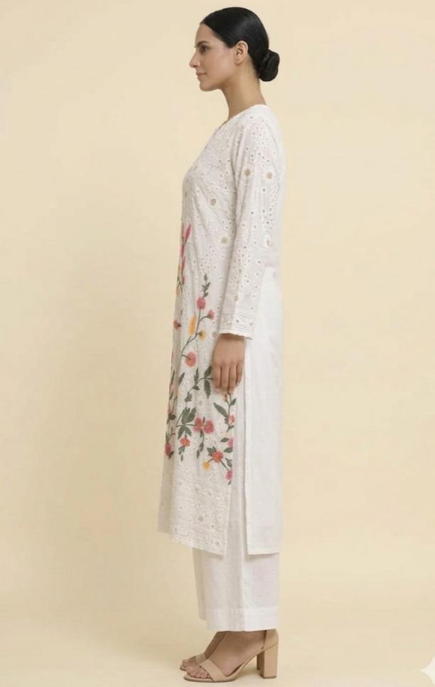 Ivory Pure Georgette Hand-Embroidered Kurti Set