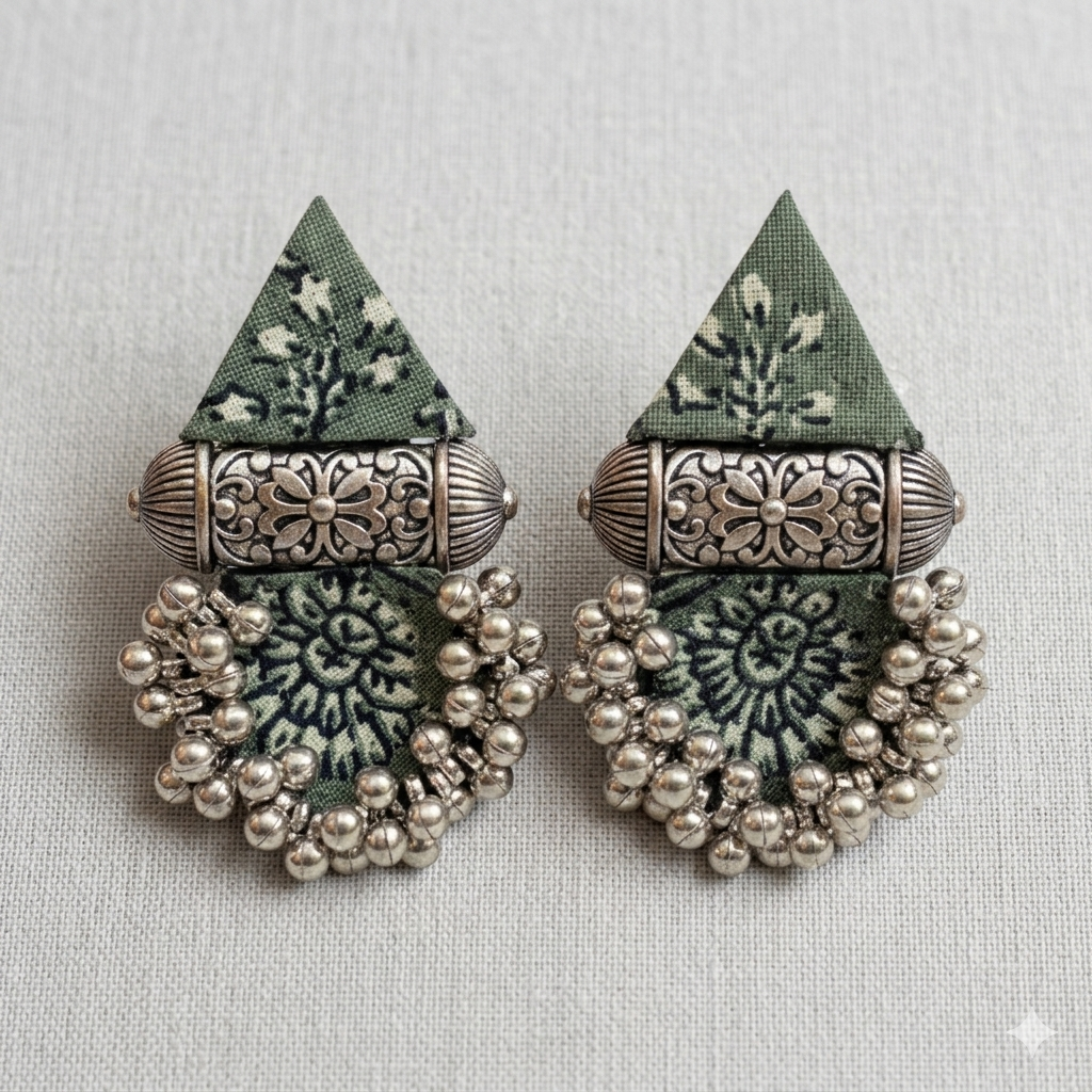 Artisan Fabric Earrings for Women | Ajrakh Hand-PrintedArtisan Fabric Earrings for Women | Ajrakh Hand-Printed
