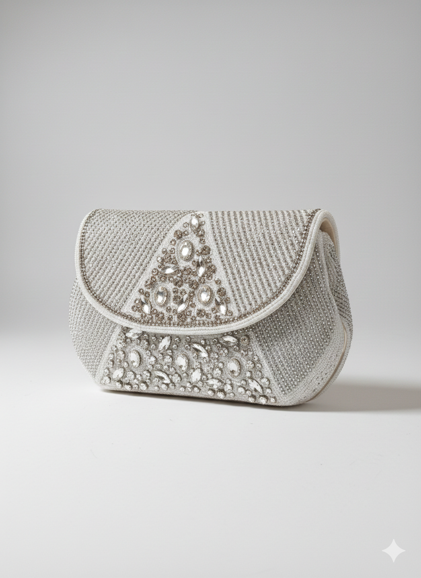 Ideal for weddings, formal events, cocktail parties, and festive celebrations, this clutch combines style and practicality. Its neutral tone complements a wide range of outfits, from ethnic wear to contemporary evening dresses, making it a versatile accessory for modern wardrobes.