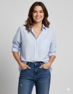 Product Description: Introducing the ultimate balance of polish and ease: our Women’s Light Blue Pinstripe Cotton Shirt. This piece takes the traditional professional shirt and gives it a modern, comfortable twist. Crafted from 100% pure, soft cotton, the fabric features a delicate pattern that adds subtle visual interest without sacrificing professionalism.