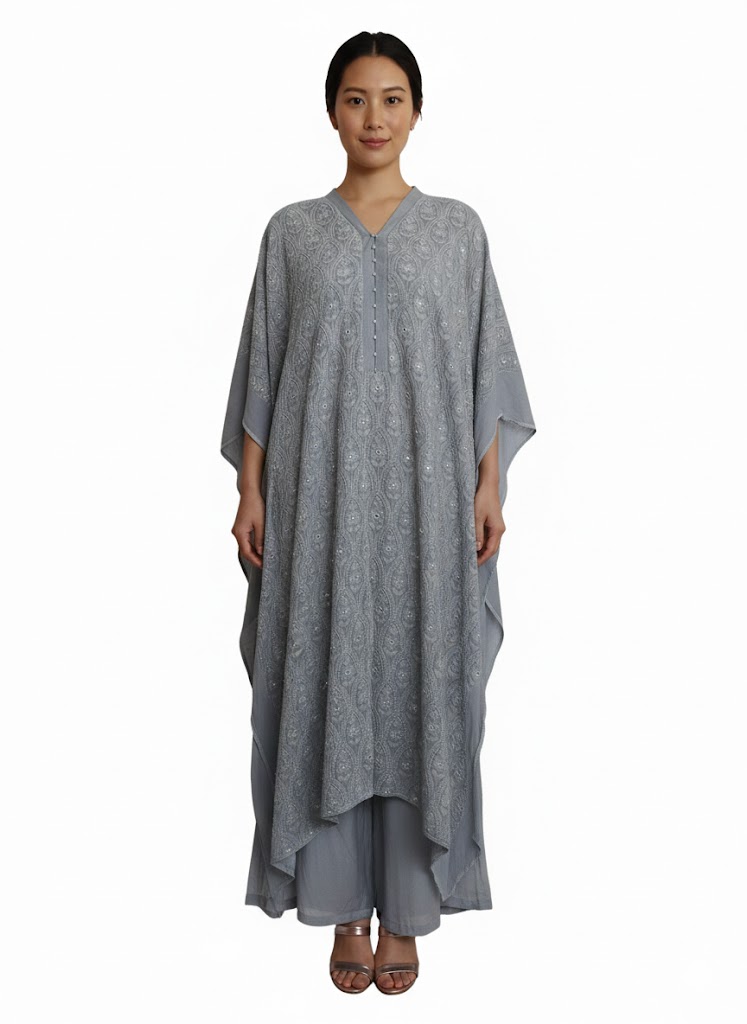 Embrace effortless elegance with this beautifully crafted women’s semi-stitched kurti and pant set, designed to keep you stylish and comfortable all day long. The kurti is made from pure georgette fabric and features intricate machine chikankari work all over, adding a touch of richness and traditional charm. A uniquely designed neckline and attached lining enhance its elegance and wearability.