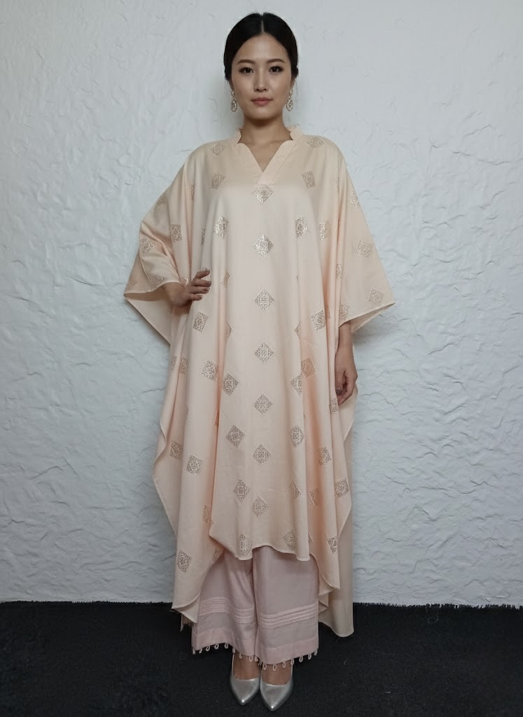 Crafted from glazed cotton, the kurti is adorned with elegant threadwork and sequin highlights, making it ideal for daytime, occasion, travel, and evening wear. Designed to complement all body types and seasons, this ensemble blends style with comfort effortlessly.