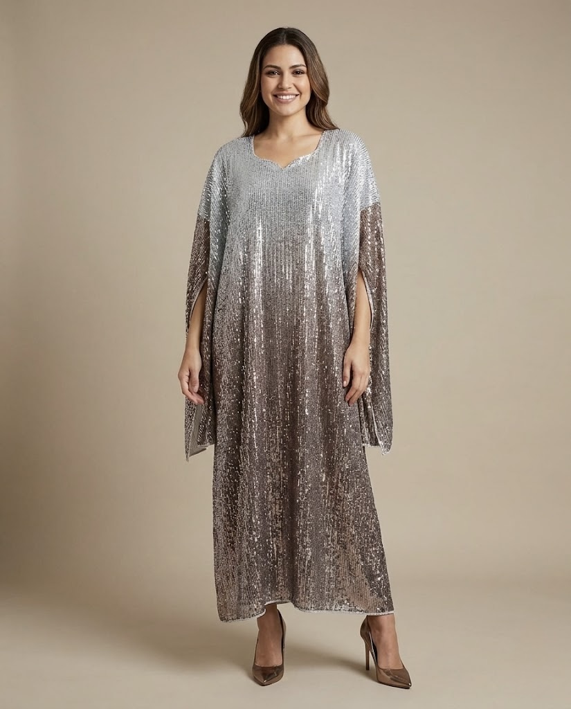 Breathtaking Sequin Stretchable Semi-Stitched Dress with Ombré Highlight
