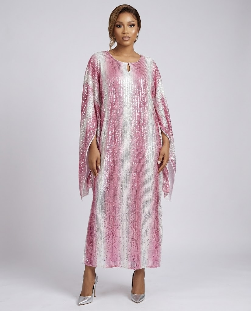 Make a stunning entrance with this breathtaking sequin semi-stitched dress, designed with a subtle ombré highlight that adds depth and dimension to your look. The dress features a graceful cascading fall and a soft shimmer, making it the perfect choice for evening events, celebrations, and festive occasions.