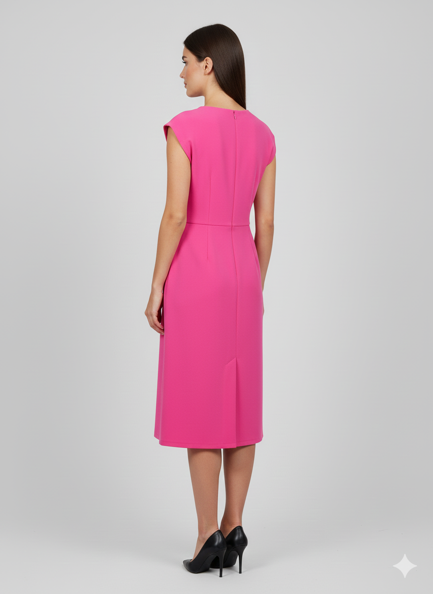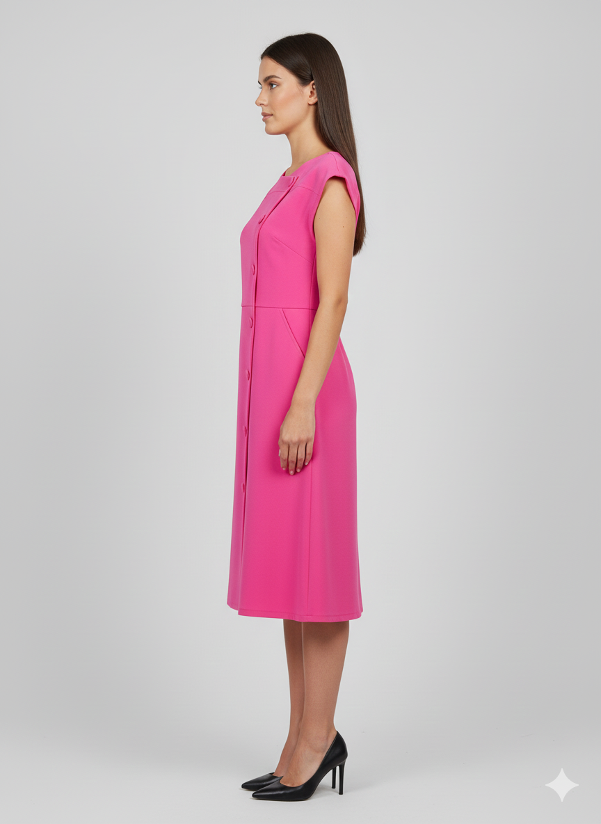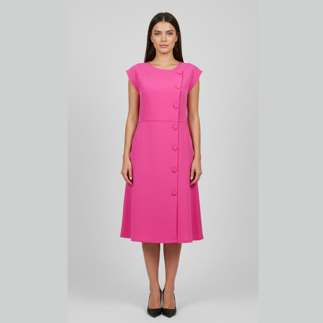Elevate your daily wardrobe with the effortless sophistication of our Banana Crepe Front-Button Dress. This piece combines the crisp, structured drape of premium banana crepe fabric with a soft-touch finish, offering a silhouette that is both professional and relaxed.